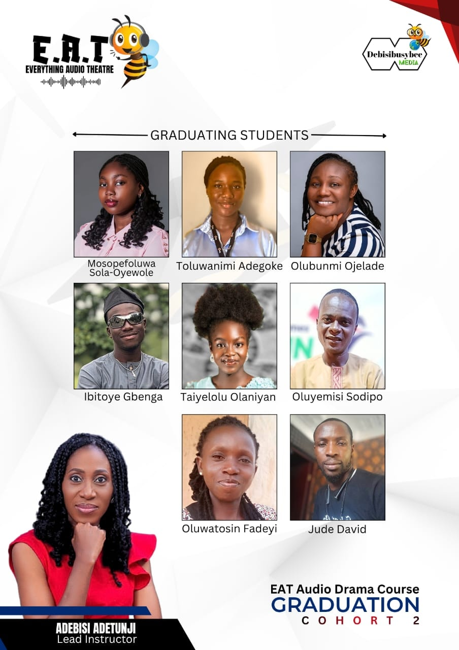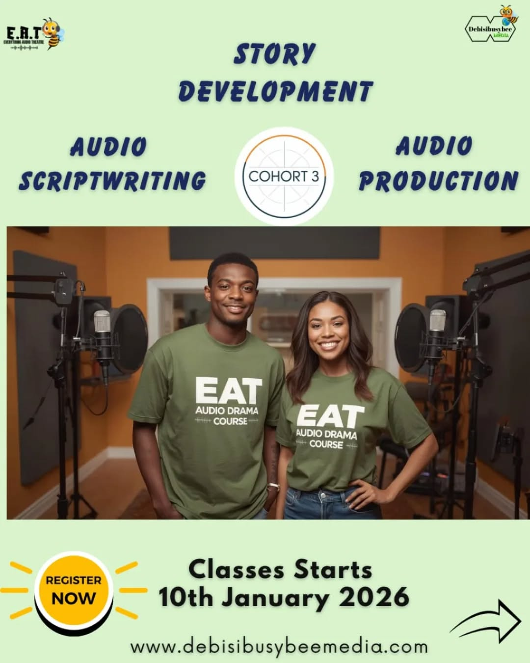 My experience during EAT Audio Drama course was a fantastic and memorable experience with my brilliant instructors especially with Mrs Adebisi Adetunji and other co coordinators .