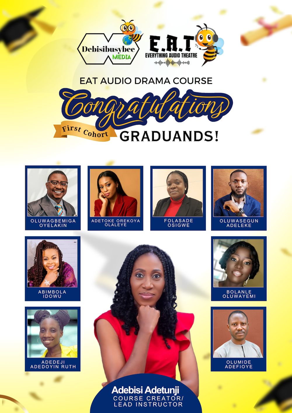 My experience during EAT Audio Drama course was a fantastic and memorable experience with my brilliant instructors especially with Mrs Adebisi Adetunji and other co coordinators .
