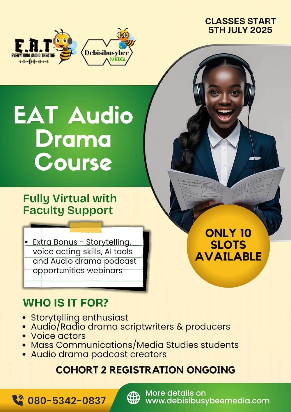 My experience at the EAT Audio Drama Course was an interesting journey. From writing the plot of my story to getting my script reading I must say was more than fulfilling. To