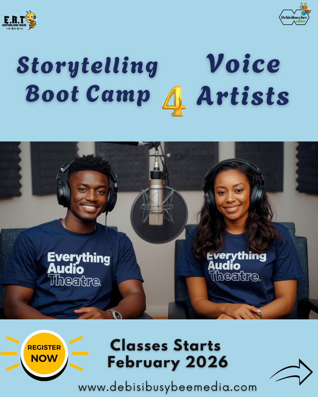 The Storytelling Bootcamp Series for Voiceover Artists is a dynamic, hands-on training designed to help you master the timeless skill of storytelling in the modern digital age. This bootcamp blends creativity with strategy — showing you how to turn ideas into emotionally engaging stories for film, audio, writing, and social media.